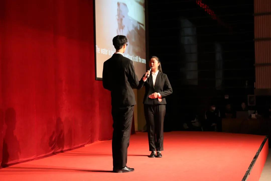 在比赛进入之前,为致敬建党一百周年,回顾我们党领导人进行革命、建设和改革的光辉历程,选手们带来了两段配音:《the meaning of China》、《A hundred year prologue to a great cause》,充分展示了建党百年来的风采。